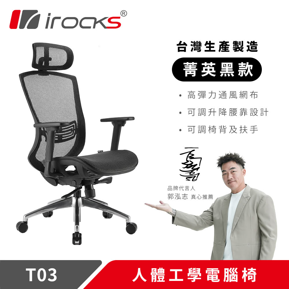 【iRocks】T03 人體工學辦公椅 菁英黑