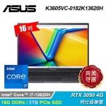 【ASUS 華碩】K3605VC-0182K13620H 16吋 特仕版筆電 搖滾黑|升2T