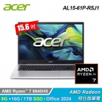 【Acer 宏碁】AL15-61P-R5J1 15.6吋 R7 特仕版筆電 銀色|升24G/1T/Office 2024
