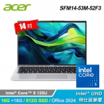 【Acer 宏碁】SFM14-53M-52F3 14吋 特仕版筆電 銀色|升32G/Office 2024