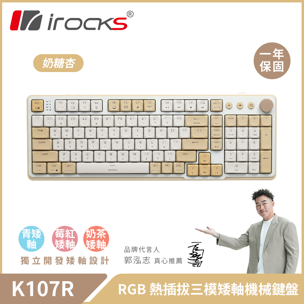 【iRocks】K107R 無線三模機械鍵盤|奶糖杏 青矮軸