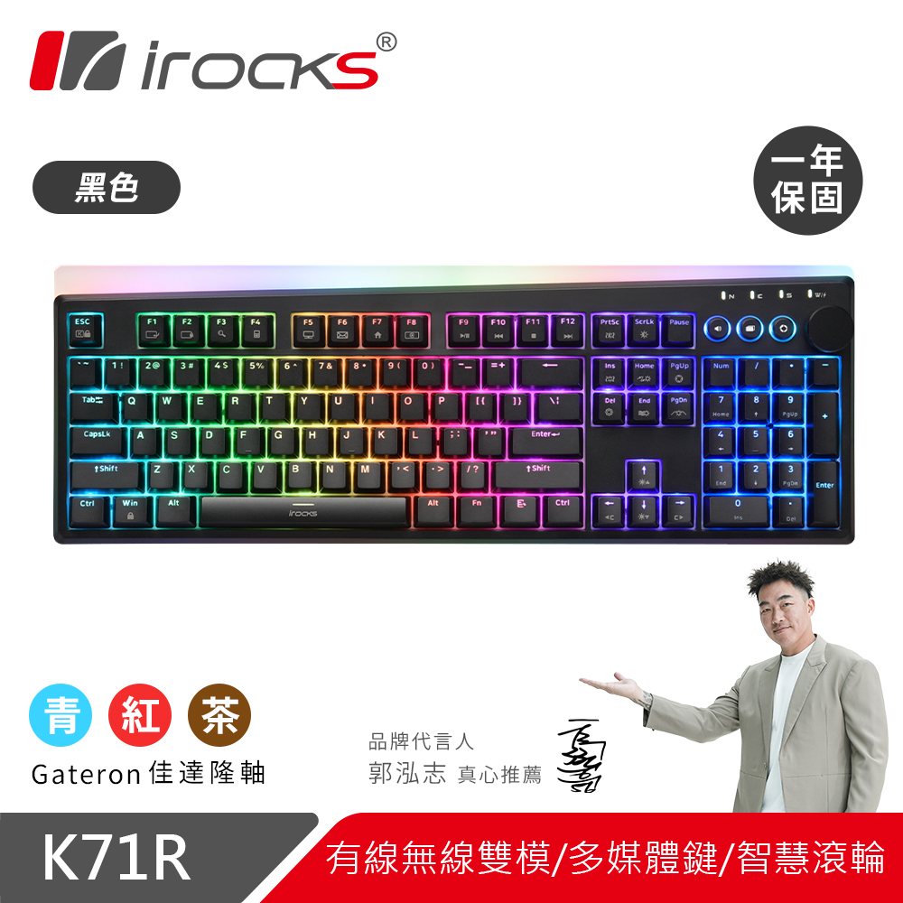 【iRocks】K71R RGB 無線機械式鍵盤 Gateron紅軸 黑色