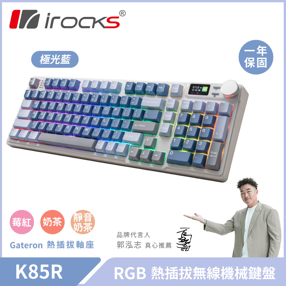 【iRocks】K85R RGB 熱插拔 無線 機械鍵盤|極光藍 / 莓紅軸