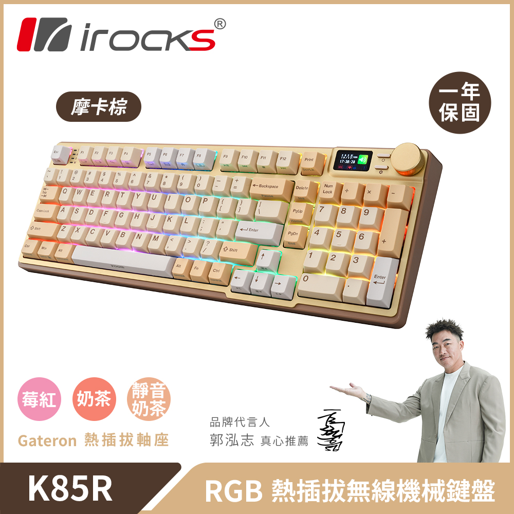 【iRocks】K85R RGB 熱插拔 無線 機械鍵盤|摩卡棕 / 莓紅軸