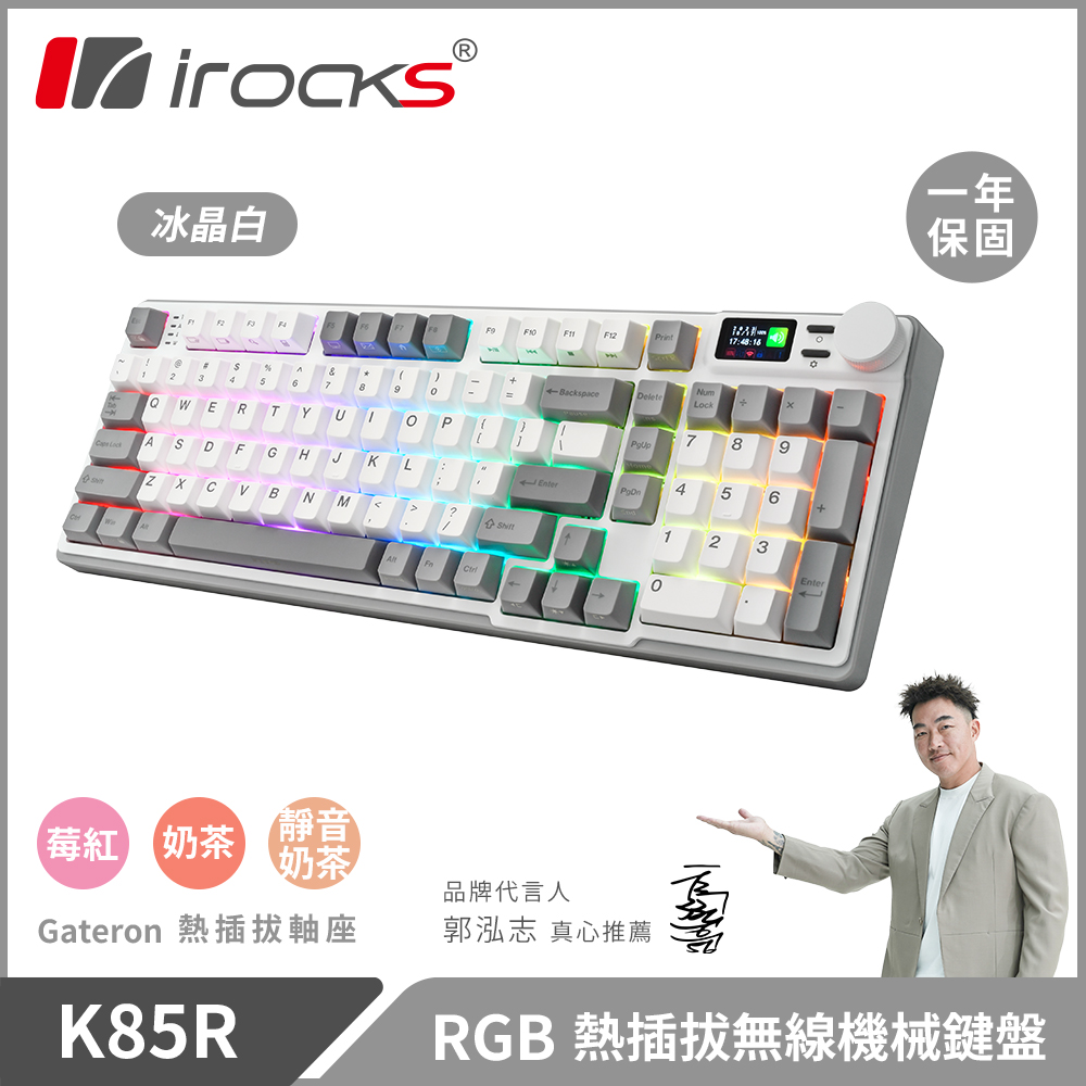 【iRocks】K85R RGB 熱插拔 無線 機械鍵盤|冰晶白 / 奶茶軸