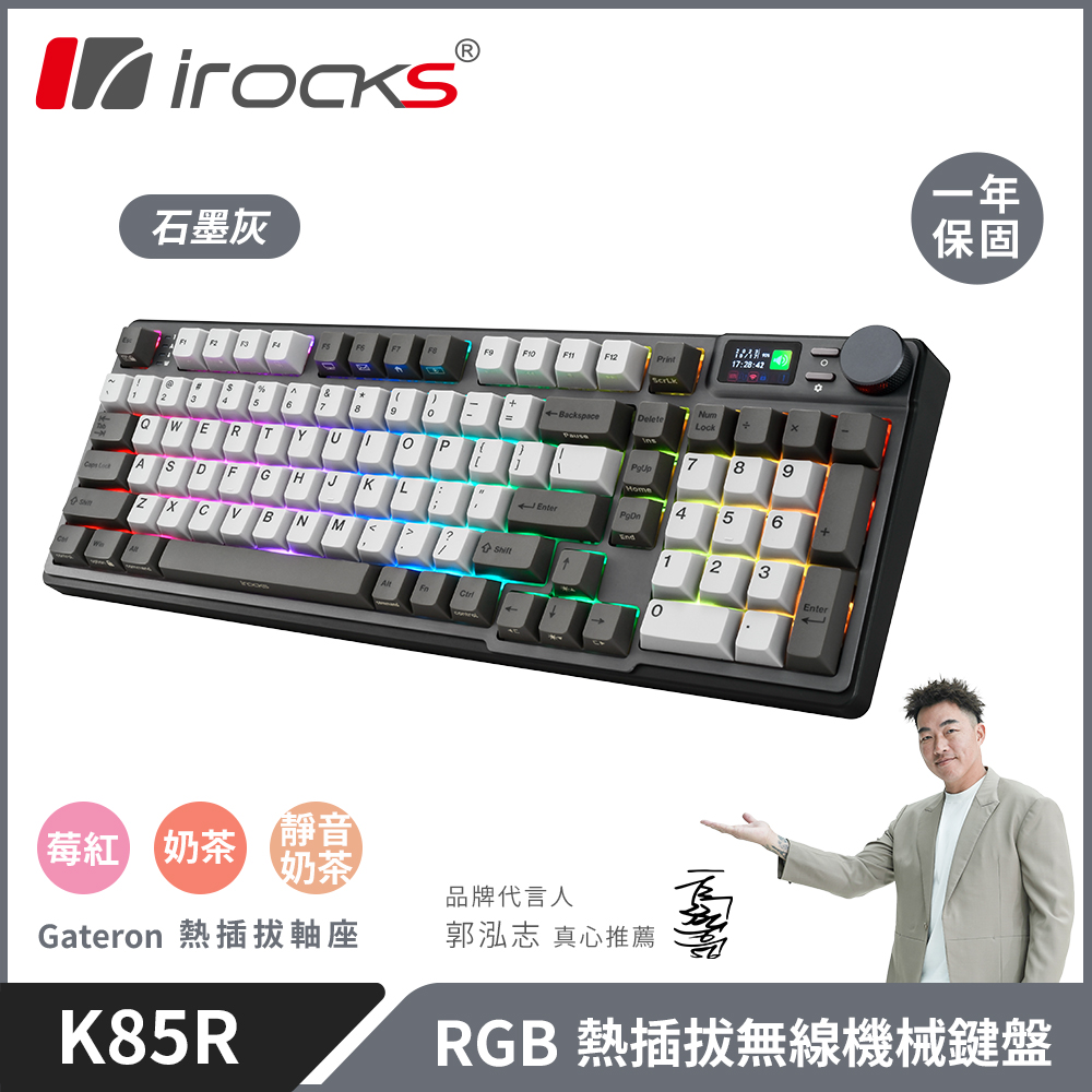【iRocks】K85R RGB 熱插拔 無線 機械鍵盤|石墨灰 / 奶茶軸