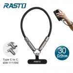 【RASTO】RX71 Type C 60W 充電傳輸手機短掛繩 30CM|黑色