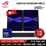 預購【ASUS 華碩】GX651AX-0022B386H-NBLO 16吋 U9 RTX5090 雙螢幕電競筆電