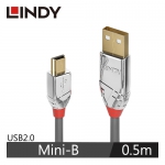 【LINDY 林帝】CROMO USB2.0 TYPE-A公 TO MINI-B公 傳輸線 0.5M 36630
